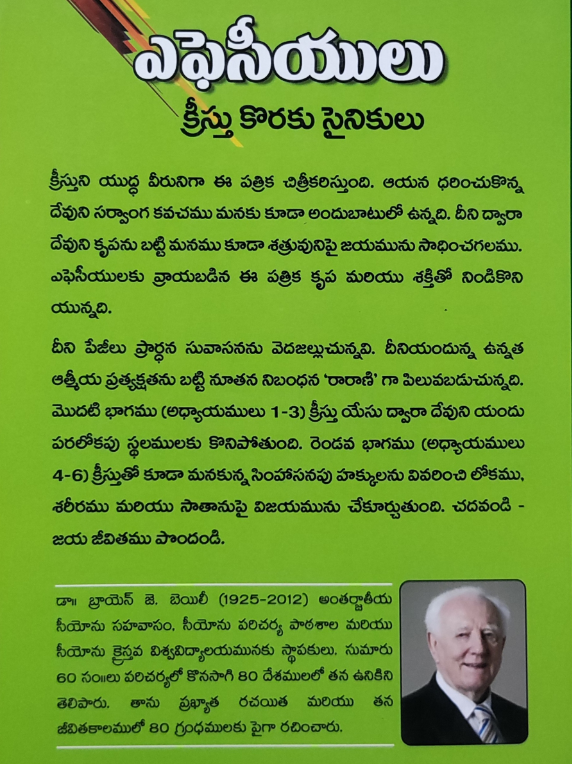 దీని పేజీలు ప్రార్ధన సువాసనను వెదజల్లుచున్నవి. దీనియందున్న ఉన్నత ఆత్మీయ ప్రత్యక్షతను బట్టి నూతన నిబంధన ‘రారాణి’ గా పిలువబడుచున్నది. మొదటి భాగము (అధ్యాయములు 1-3) క్రీస్తు యేసు ద్వారా దేవుని యందు పరలోకపు స్థలములకు కొనిపోతుంది. రెండవ భాగము (అధ్యాయములు 4-6) క్రీస్తుతో కూడా మనకున్న సింహాసనపు హక్కులను వివరించి లోకము, శరీరము మరియు సాతానుపై విజయమును చేకూర్చుతుంది. చదవండి – జయ జీవితము పొందండి.